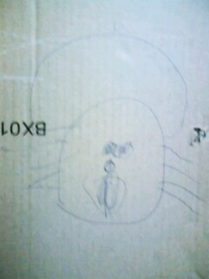 段ボールに書いた絵なのでちょっとわかりにくいかもしれませんが、このドラえもんはウマい!と思いません?
